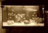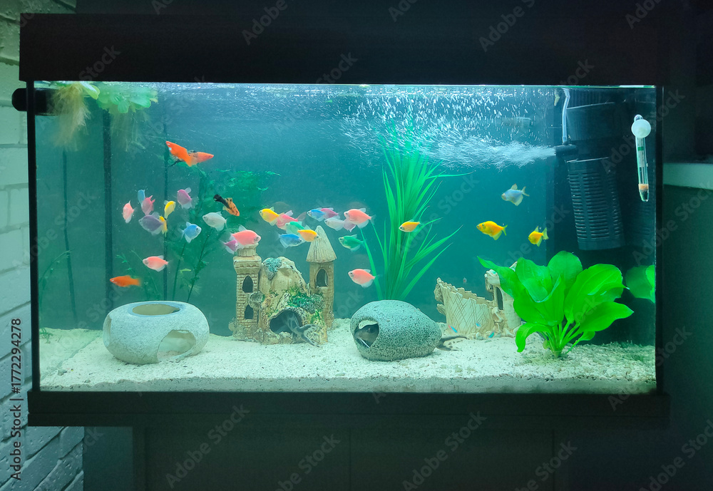 Goldfish in freshwater aquarium with green beautiful planted tropical