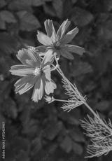 Bright pink flowers-cosmos blooming against a lush green background in a garden during daylight hours