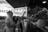 Friends enjoying celebration with drinks from a food truck