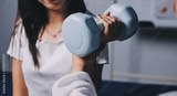 old woman training with physiotherapist using dumbbells at home therapist assisting senior woman with exercises in nursing home elderly patient using dumbbells with outstretched arms no logos no bran