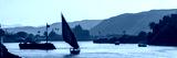 Felucca (traditinal egyptian sailing boat) on the Nile river at sunset in Aswan, Egypt panoramic travel web banner