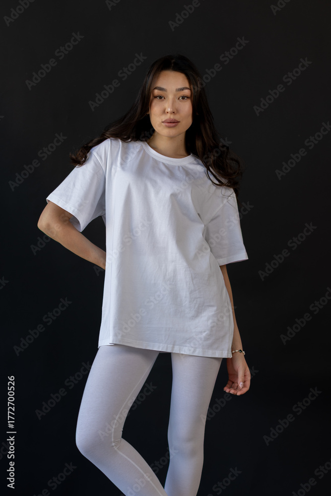 Ecommerceready photograph featuring confident model wearing basic activewear in studio setting