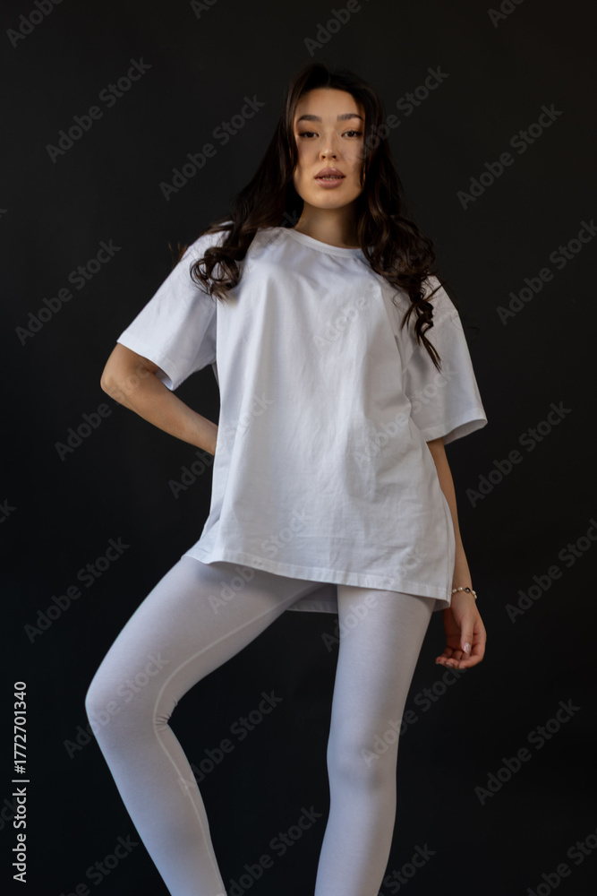 Ecommerceready photograph featuring confident model wearing basic activewear in studio setting