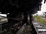 A derailed carriage. As a result of the train accident, the train derailed. An accident on the railroad. A railway carriage that derailed on a sunny day. Derailment of railway wagons.