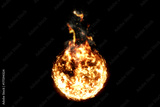 3D rendering, ball of flame fire with smoke in black background, dangerous flame
