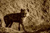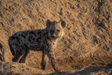 A young Spotted hyena cub standing at the entrance of the den, Greater Kruger.