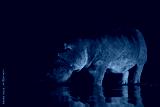 A hippo bull standing in the shallow waterhole at night. With beautiful reflection, Greater Kruger.
