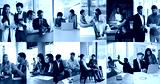 Business professionals engaged in teamwork and professionalism communication, collage view