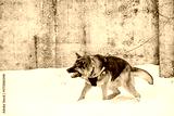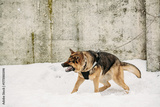 Training Of Purebred German Shepherd Dog In Special Outfit. Alsatian Wolf Dog During Exercise. Attack And Defence. Winter Snowy Day