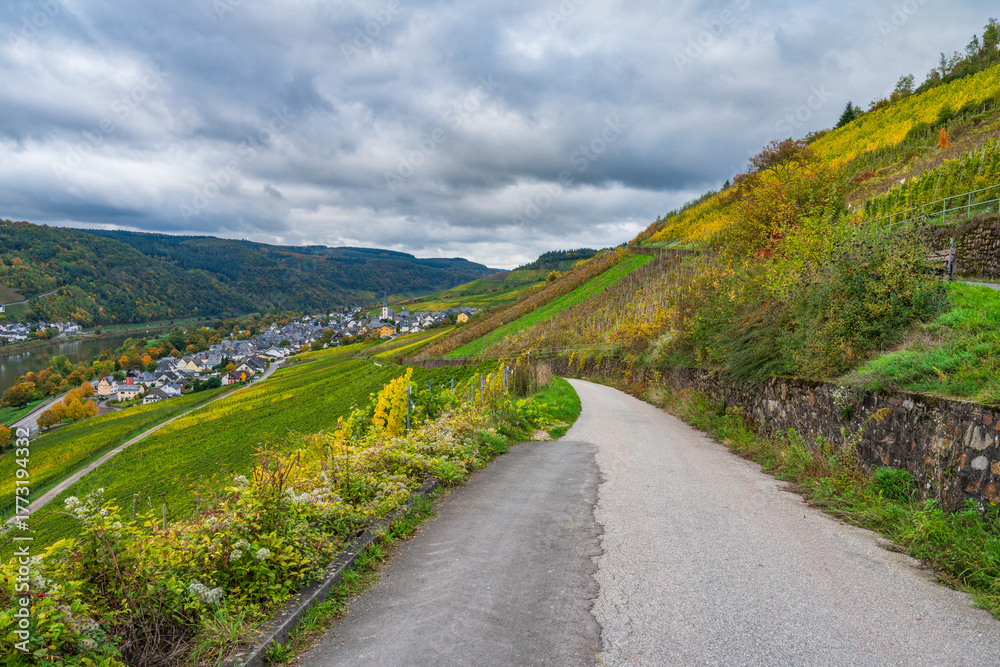 Autumn Vineyards at the Moselle river region in autumn season. Germany