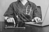 Doctor and medical worker in virtual environment to manage health information, quality certificates, checklists, document, analyst support marketing planning, medical report, work quality standard.