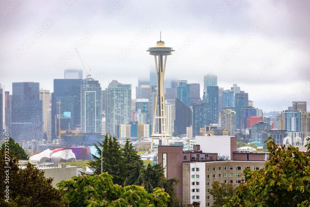 Scenic View of Seattle Skyscrapers from Above on Cloudy Day