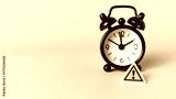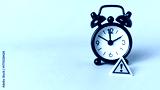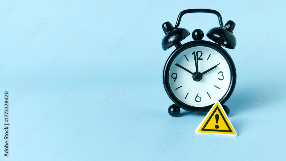 Critical Deadline and Time Management Risk: Warning Sign on a Black Alarm Clock