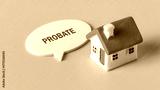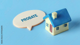 Miniature House Model and Speech Bubble with the Word 'PROBATE' Representing Legal Estate Planning and Property Inheritance