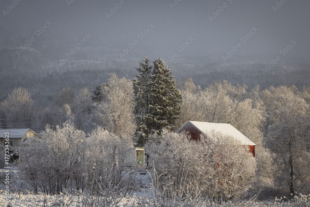Entorno de otoño invierno nevado en las islas lofoten