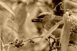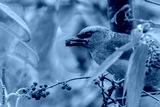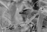 Golden-naped barbet perched on a branch eating red berries in its natural habitat