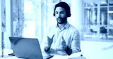 Laptop, talk and man in call center for technical support, feedback analysis or troubleshooting. Computer, contact us and agent at work for software assistance, customer service or data for IT