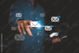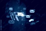 A person using a digital tablet with email icons and message notifications, representing online communication, email marketing, business technology, and modern digital correspondence.