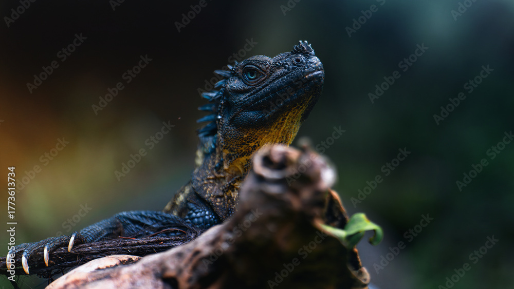 Beautiful Sailfin Lizard Blue water dragon close up portrait photo