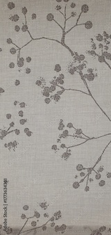 Texture with floral patterns and leaves on a white or beige background. Floral ornament wallpaper or fabric. Wallpaper texture with flowers and leaves.