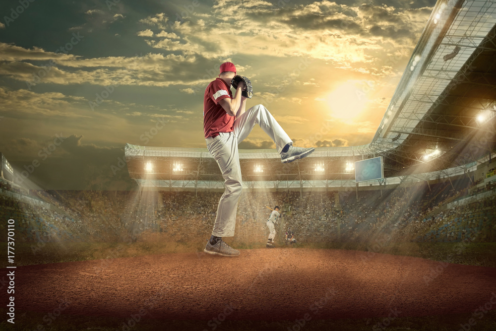 Baseball players in action on the stadium.