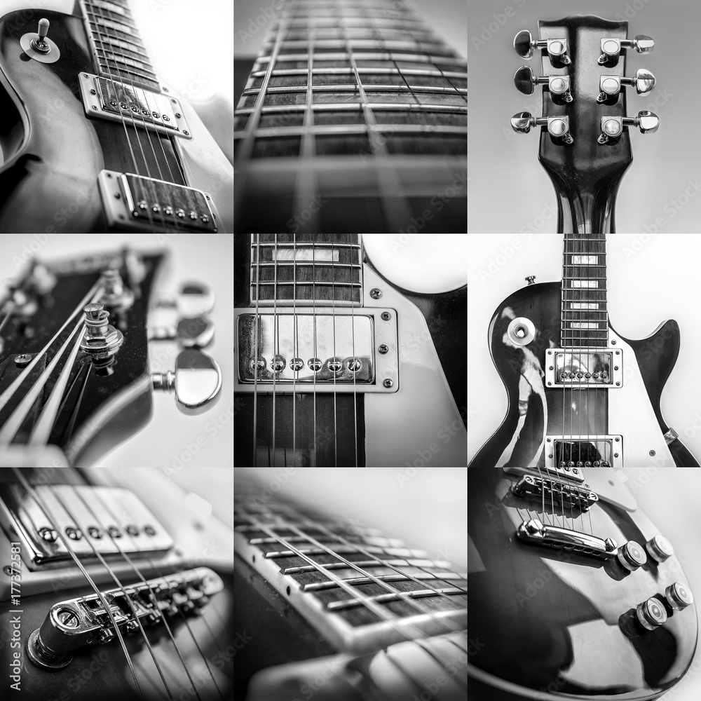 Rock guitar. Collage of close-up view parts of guitar, very popu