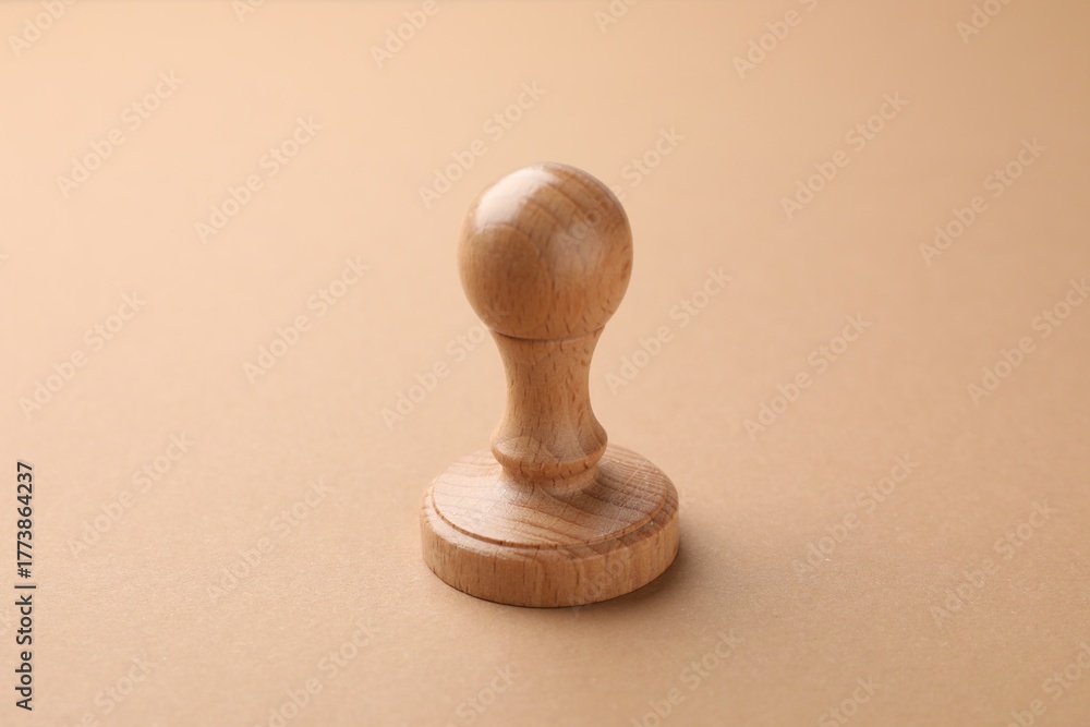 One wooden stamp on brown background, closeup