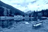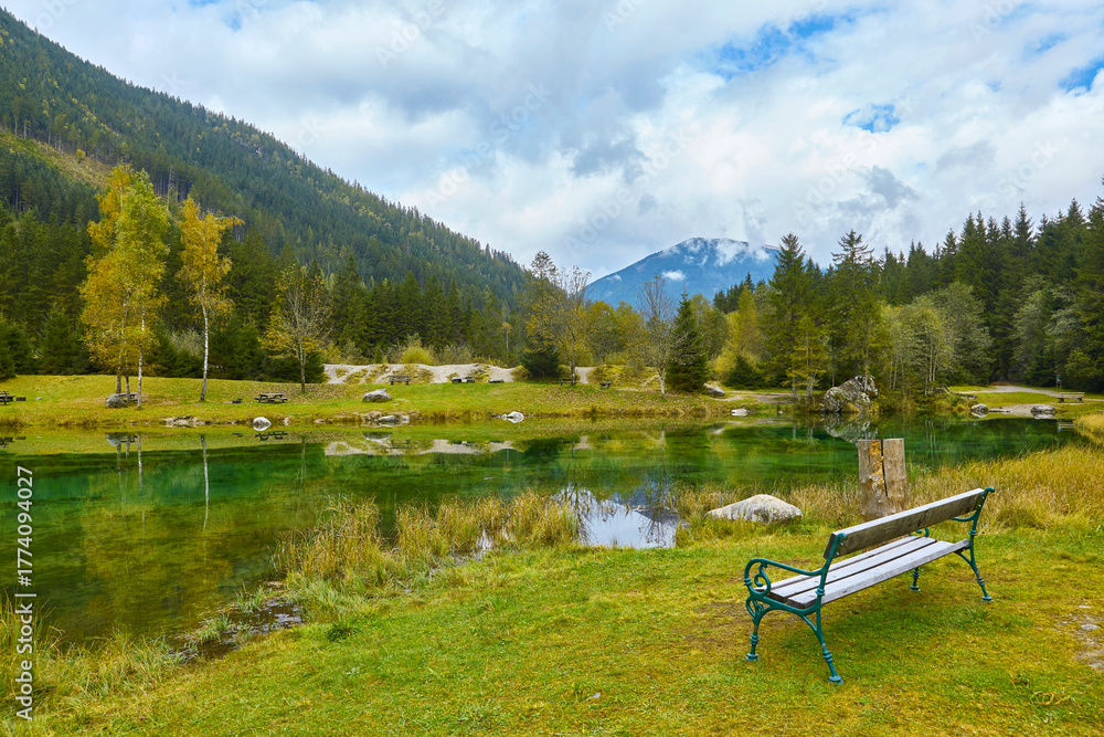 Blick auf den Blausee im Obersulzbachtal in den österreichischen Alpen, mit schöner Spiegelung.