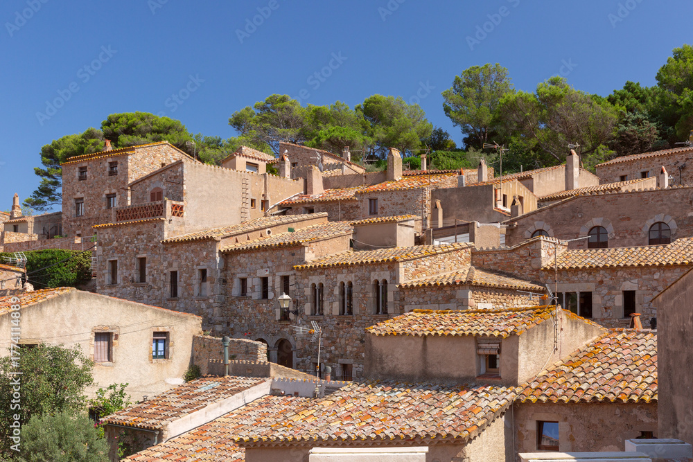 Traditional stone houses with red tiled roofs in Tossa de Mar Spain