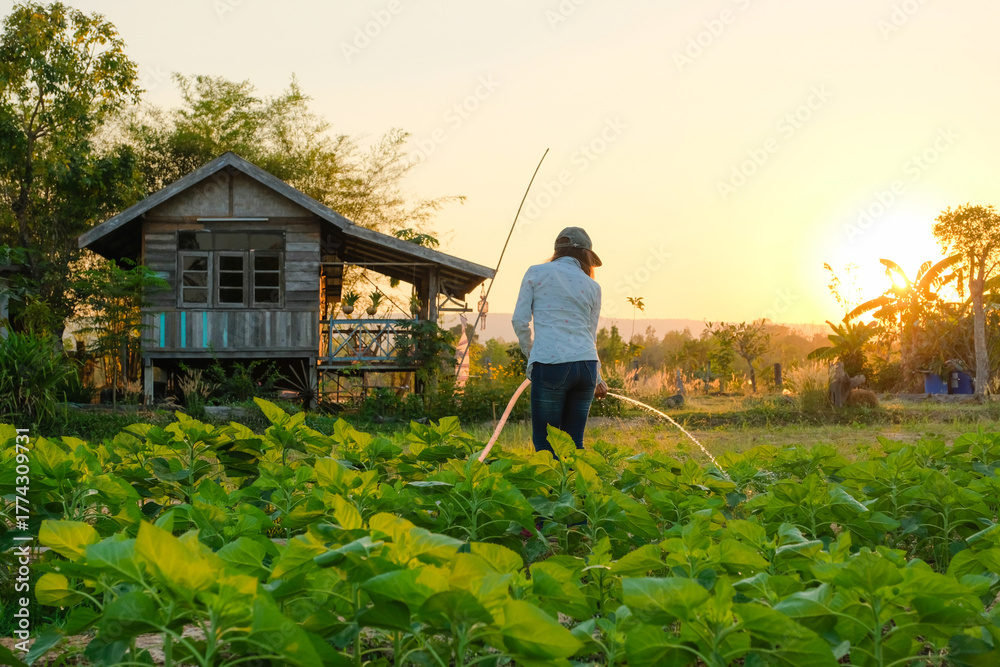 Senior people working in the garden, a summer outdoors activity in the grass and nature