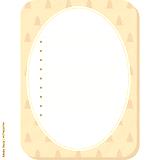 Hand drawn pastel pink background with repeating Christmas tree pattern and white oval frame for text with lines and stars