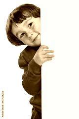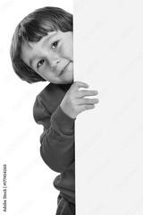 Kind kleiner Junge Werbung Marketing Schild leer Hochformat Textfreiraum Copyspace Freisteller