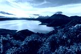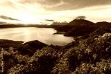 Sunrise in the morning at lake Atitlan, Guatemala - amazing panorama view to the volcanos San Pedro, Toliman and Atitlan