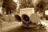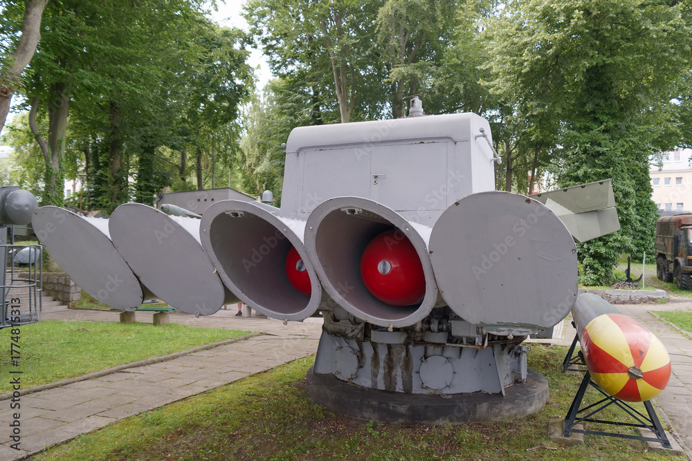 Military missile system displayed in a public park setting showcasing defense technology and history of warfare in an outdoor area