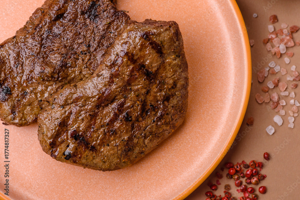 Food, grilled beef steak, roast meat for lunch. Grilled beef steak