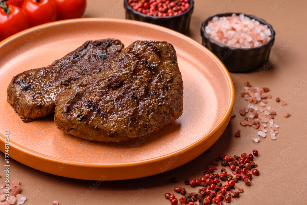 Food, grilled beef steak, roast meat for lunch. Grilled beef steak