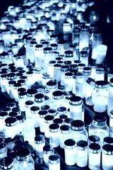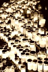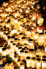 Large number of lit grave candles in remembrance of dead family members on All Saints' Day