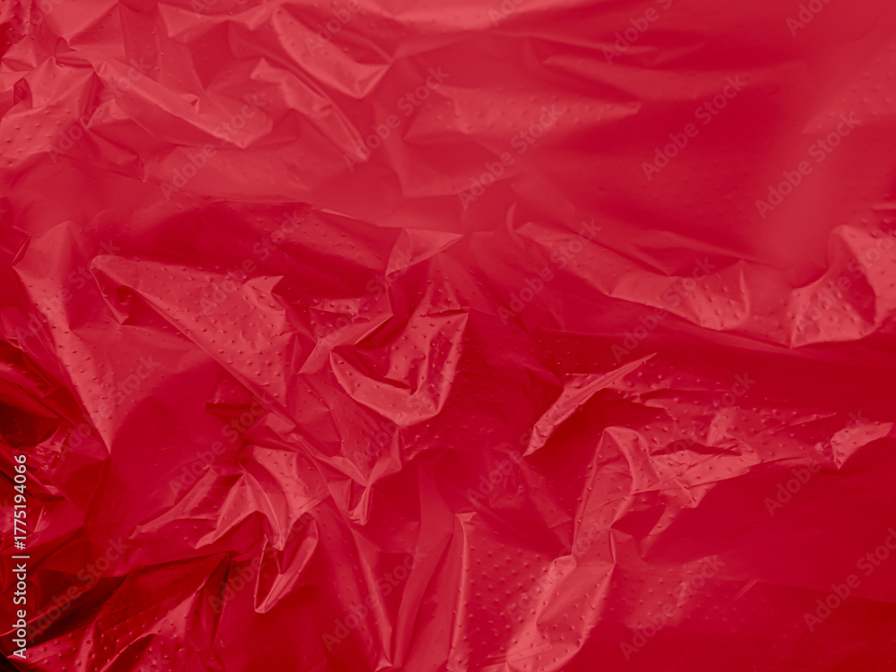 Abstract background plastic bag red vacuum cling foil wrinkle texture wall crumpled film foil overlay seal wrap polyethyene packaging frame material industry wrinkle template ecosystem