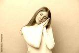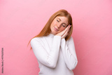 Young redhead woman isolated on pink background making sleep gesture in dorable expression