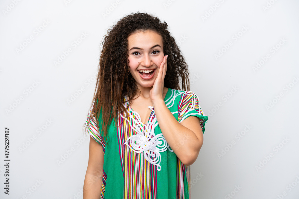 Young Arab woman isolated on white background with surprise and shocked facial expression