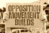 "Opposition Movement Builds" Grassroots opposition movements organize around social, economic, and political issues nationwide. OPPOSITION. GRASSROOTS. MOVEMENT.