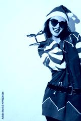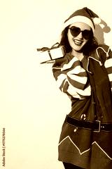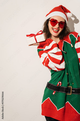 Woman with Christmas Present Wearing Santa Hat