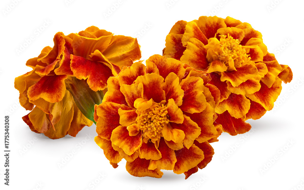 Orange Marigold flower (Tagetes erecta, Mexican marigold, Aztec marigold, African marigold) Tagetes erecta flower isolated on white. clipping path