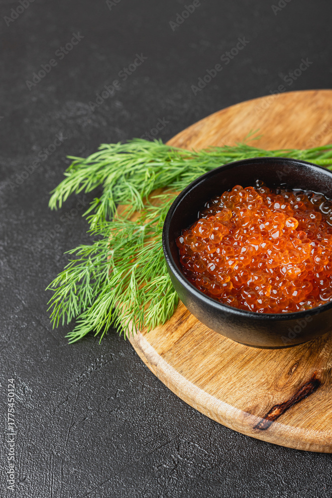 Red caviar with dill in a bowl