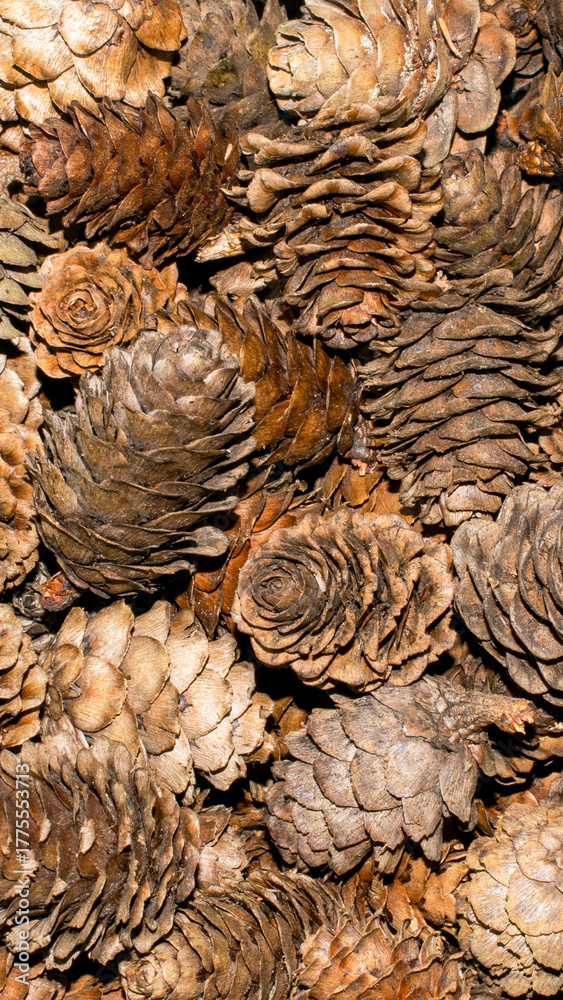 brown larch cones with visible details. background or texture