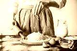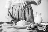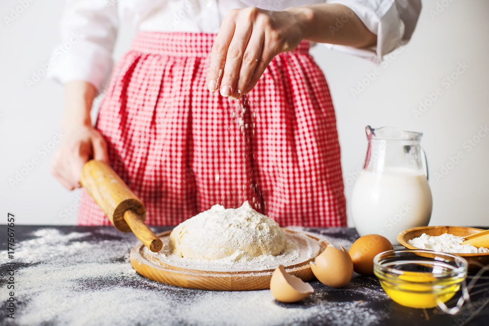 Making dough by female hands at bakery