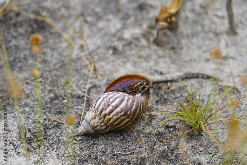 Giant African snail (Lissachatina fulica syn. Achatina fulica) [also called East African giant snail] belongs to the African giant snails, a family of terrestrial pulmonate snails. Fortaleza, Brazil