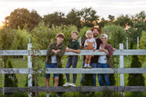 Farmer family portrait. Prents with three kids.