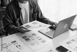 UX UI Designer Planning innovative Mobile App with Paper Wireframe Designs at Workspace.