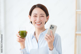 青汁を飲む女性